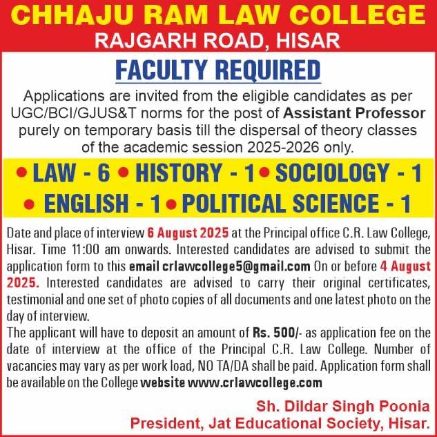Chajju Ram Law College, Rajgarh Road, Hisar-125001, Haryana - India